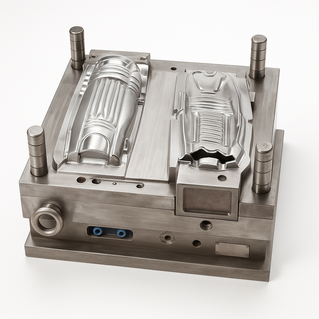 Die steel mould for manufacturing batting pads. Features a chrome finish and made from EN 31 grade die steel for enhanced durability and performance.
