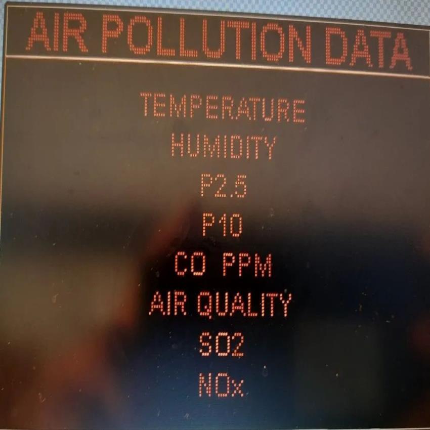 Digital display unit for indicating air pollution levels. Provides real-time air quality information. Suitable for various monitoring applications.