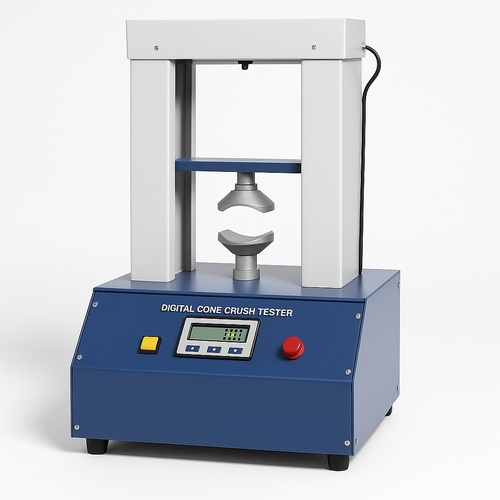 Digital Cone Crush Tester (Model PSO-451) operates at 50 Hz, 240 V, single phase. Features digital display, 500 Kgf load cell, and +/-2% accuracy.