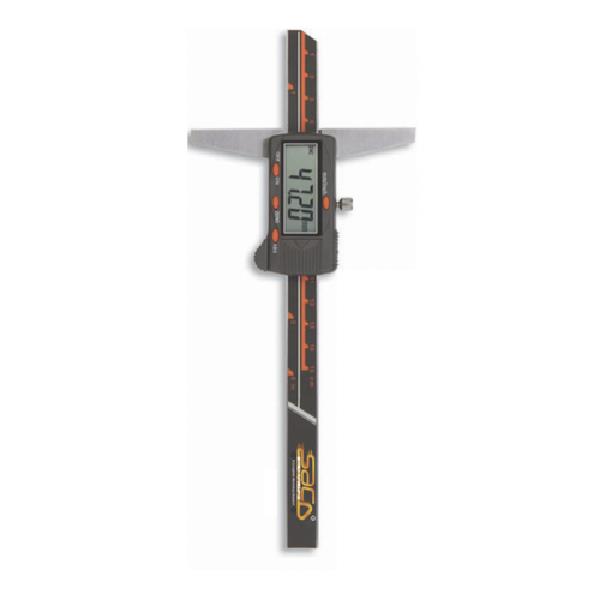 Digital depth gauge, model DDG06, made of steel. Measures up to 150 mm with +/- 0.02 accuracy. Features digital display and 24-hour battery life.