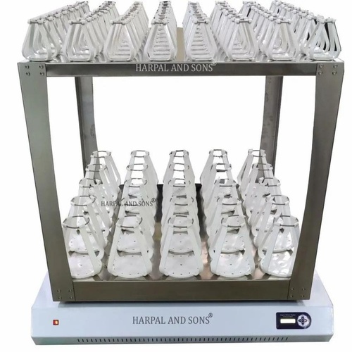 Indian-made double-decker orbital shaker with feather-touch buttons and digital display. Features timer and orbital shaking action for laboratory use.