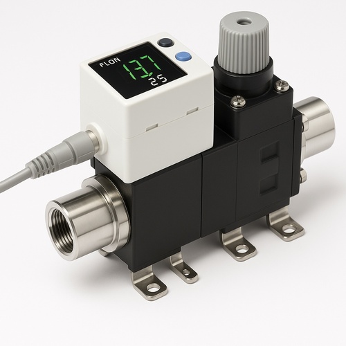 Digital flow switch designed for liquid applications. Features precise flow detection and a compact design for various industrial uses.
