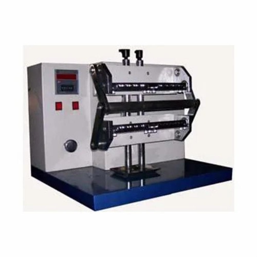 Laboratory flex testing machine with digital display and mild steel construction. Designed for material durability evaluation. Packaged in a protective box.