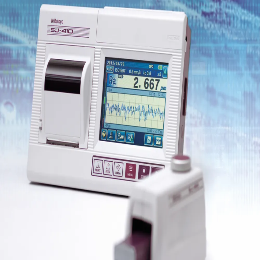 Measures surface roughness with 0.001 Micron profile resolution. Operates on 50 Hz, 220V power supply, manufactured in India.