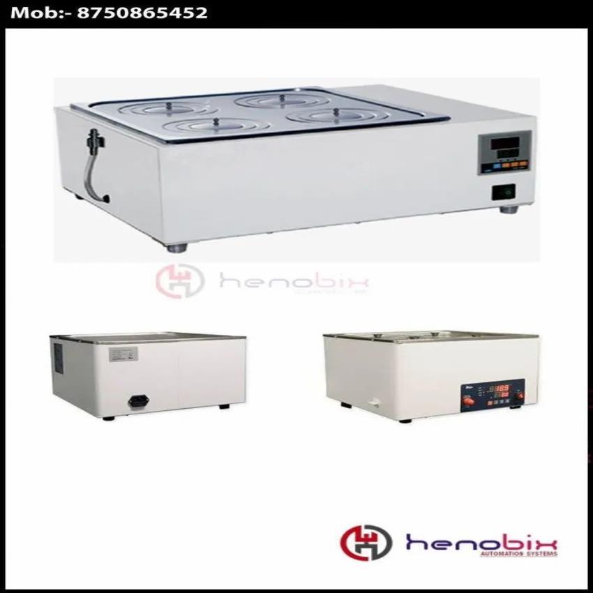 Mild steel digital water bath machine with 220-volt power supply. Ideal for various applications requiring precise temperature control in a laboratory or industrial setting. Made in India.