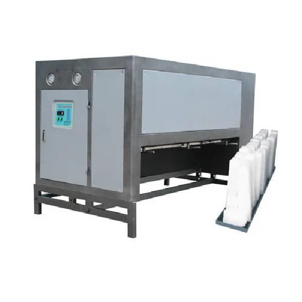 Automatic stainless steel ice block making machine. Operates on 380V, producing solid ice blocks. Durable construction for efficient ice production.