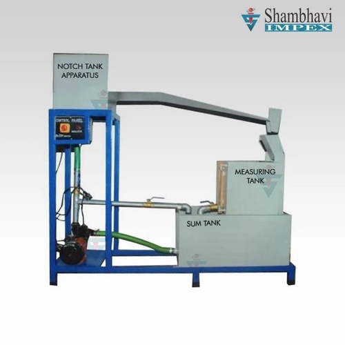 This Discharge Over Notches Apparatus (SIFDN-03) facilitates the measurement of fluid discharge through calibrated notches in a laboratory environment.