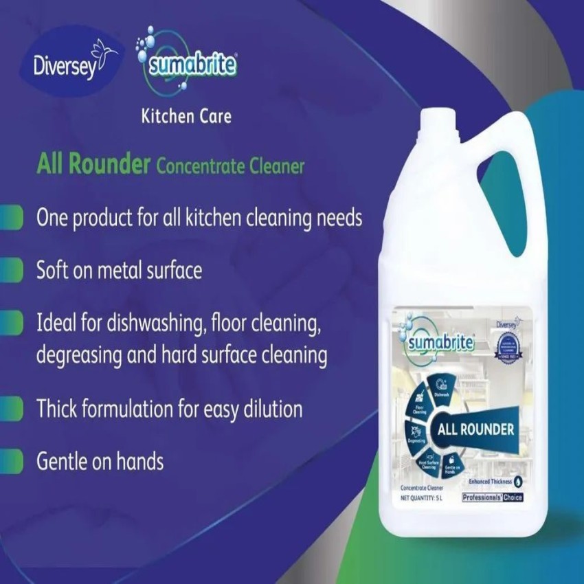 Diversey all-round concentrate dish wash liquid cleaner. 5 LTR can packaging. Made in India. Suitable for all kitchen cleaning needs.