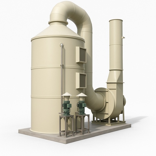 Semi-automatic disposable scrubber particulate device. Features 3 layers, SS/MS construction, producing 5000 CFM. Made in India, ideal for industrial particulate collection.