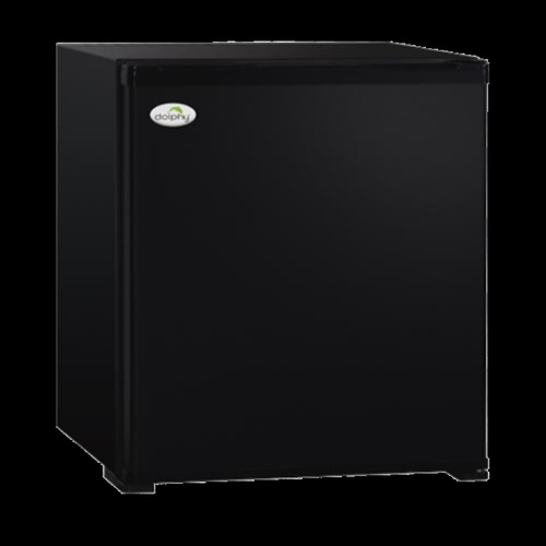 Dolphin 50L capacity mini bar glass door refrigerator. Single door design in black. Weighs 15.8 kg. Compact cooling solution for beverages.
