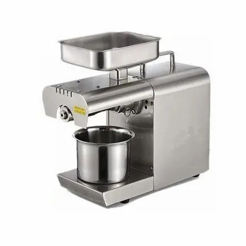 Semi-automatic domestic expeller machine with single bolt design. Extracts edible oils at 3 Kg/Hour. 220v power, 16 Kg weight.