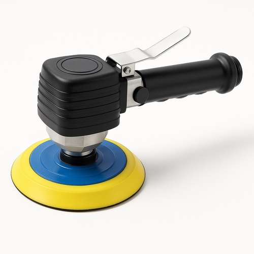 This double action sander has a 1/4 inch air inlet and operates at 6.3 CM2 air pressure. It achieves 10,000 RPM free speed and weighs 1.80 kg.