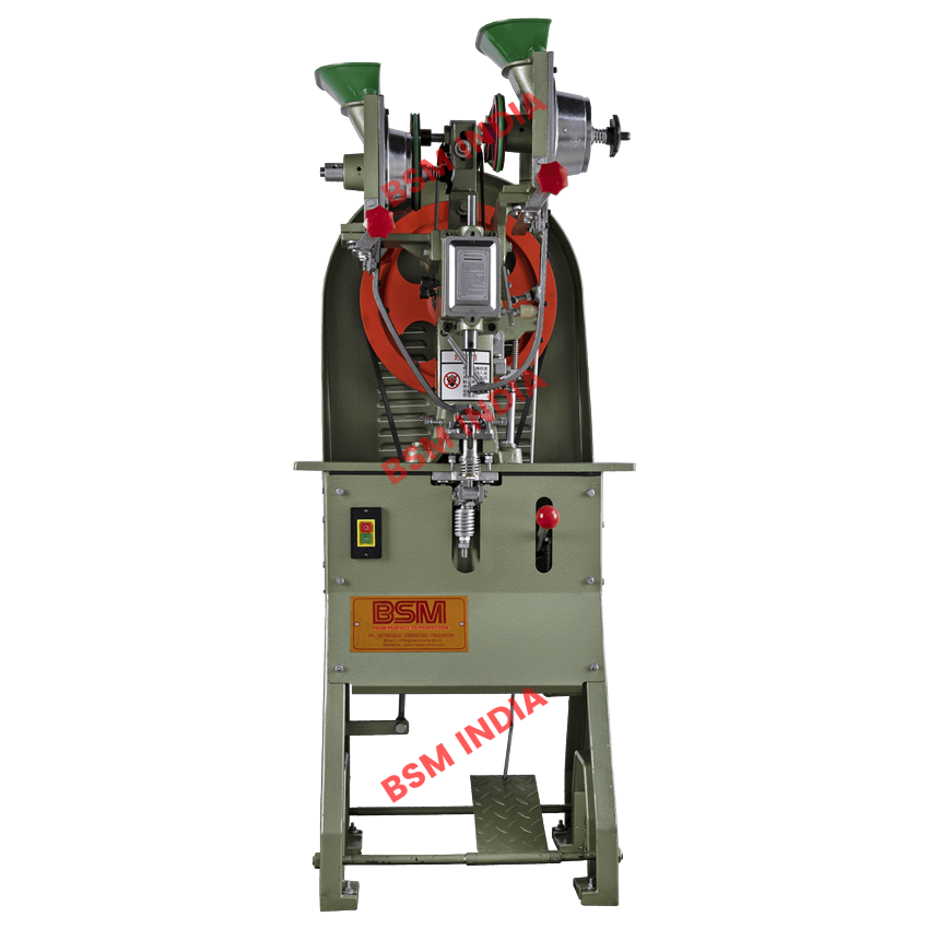 High-capacity double channel eyelet punching machine. Designed for efficient and continuous operation in industrial settings. Reliable performance for eyelet application.
