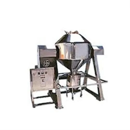SS Double Cone Blender for efficient mixing. Features 50-150 Kg capacity, 500-1000L gross/working volume, 3-6.5 HP power, and semi-auto operation. Available in matt/mirror finish.