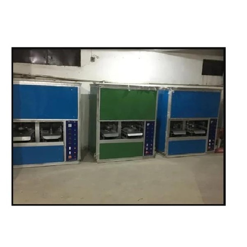Semi-automatic double die dona making machine for paper, pattal, and plastic. Single-phase motor. Capacity: 0-10,000 donas/day. Available in 4-5 inch sizes.
