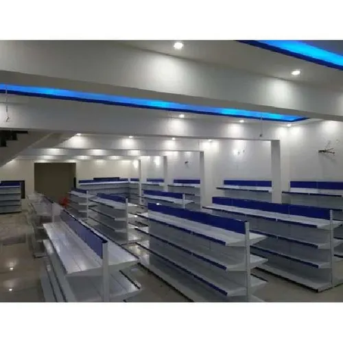 Movable mild steel display rack, 5 feet height, 3ft length, 1.5ft depth. 6 shelves, 50kg per layer capacity. Powder coated finish.