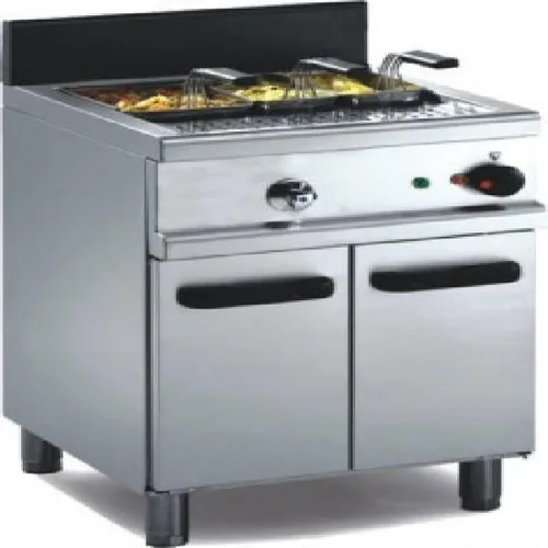 Dual-chamber pasta boiling machine for efficient cooking. Durable construction ensures longevity in commercial kitchens. Ideal for high-volume pasta preparation.