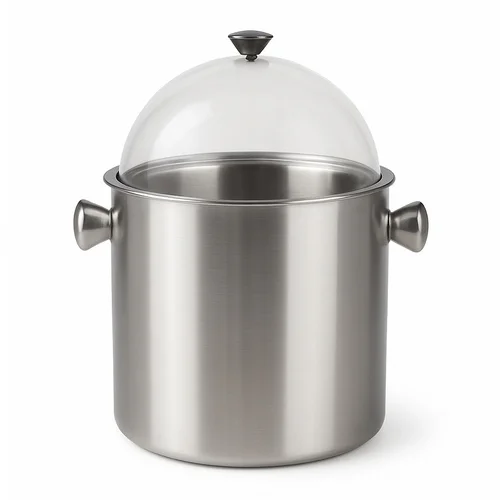 Durable stainless steel ice cream container featuring double-wall insulation. Maintains optimal temperature for frozen desserts, preventing freezer burn and preserving texture. Ideal for home or commercial use.