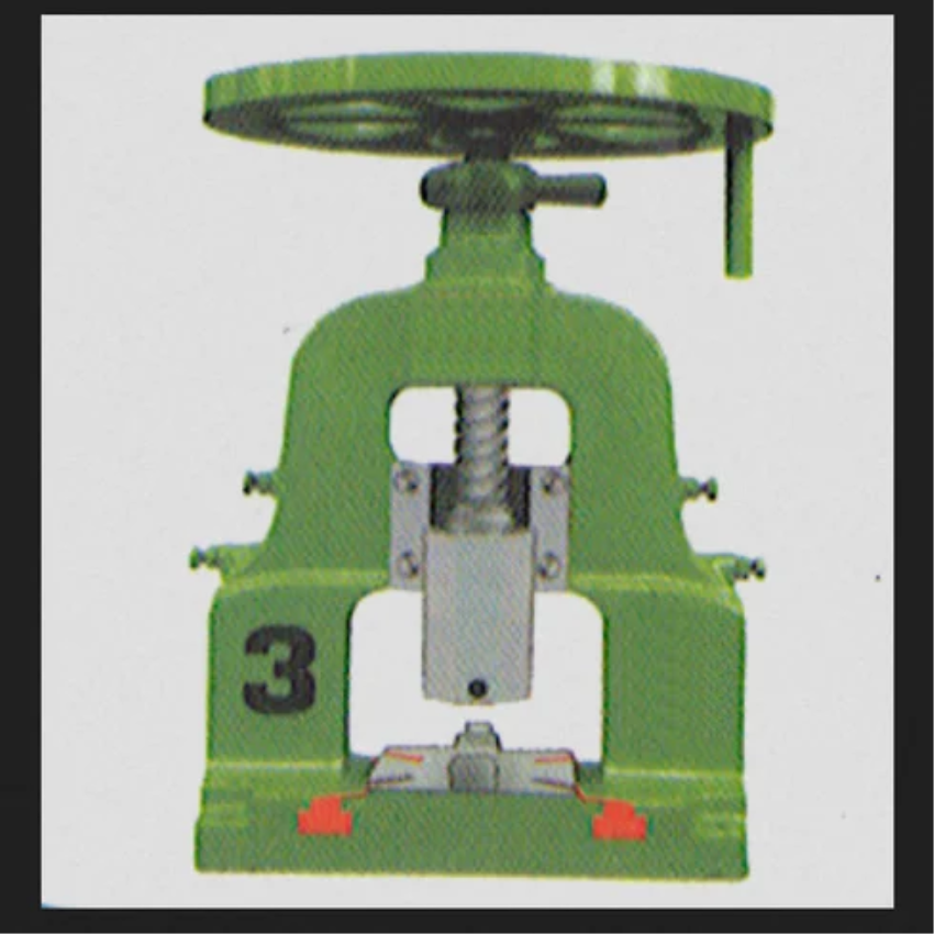 This manual double body fly press machine features a wheel for operation. Ideal for various pressing tasks, it offers robust construction for consistent performance.