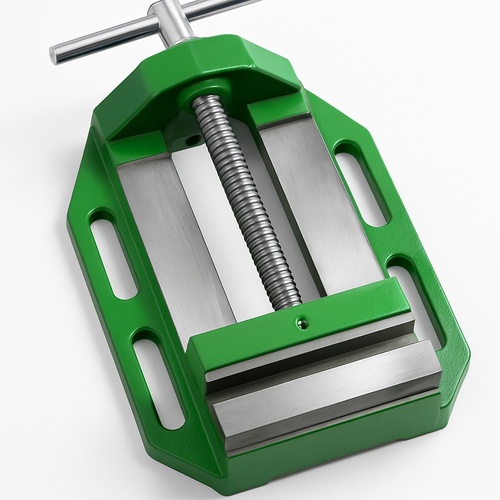 Drill Machine Vice available in 75mm, 100mm, 150mm, 200mm sizes. Jaw opening ranges from 75mm to 200mm with jaw depths of 25mm-75mm. Designed for pillar drill machines.