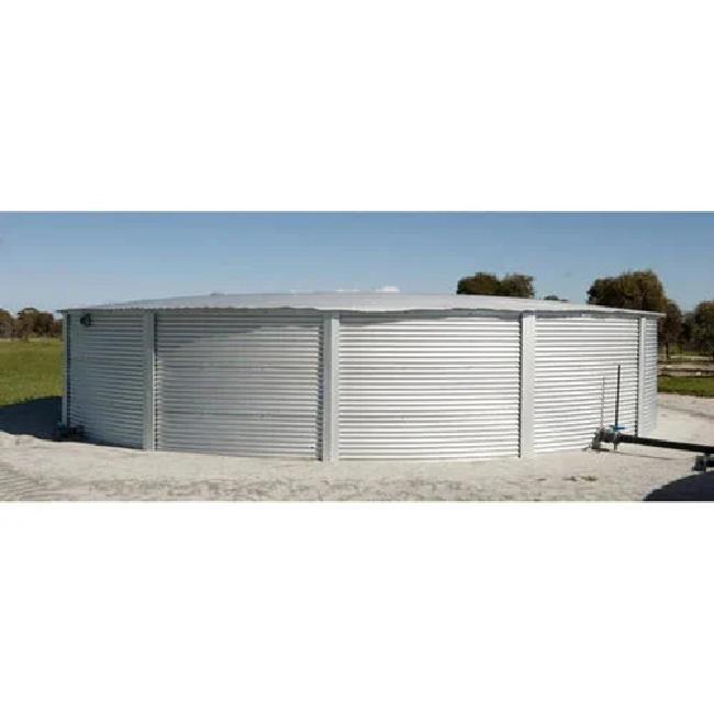 Round Zincalume steel tank with PVC liner for drinking water. Capacity up to 250000 L for industrial applications. Made in India.