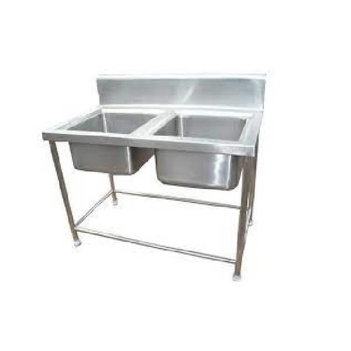 Double sink unit with a 48"X24"X34"+6" size. Robust construction for commercial and industrial use.