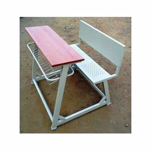 Mild steel dual desk with powder coating. Features 1 shelf made from 1 mm sheet/4 mm polish rod. MS CRC A pipe frame, 50 x 25.