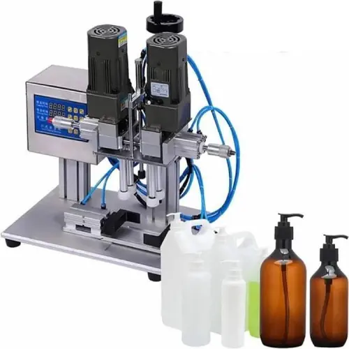 Semi-automatic duckbill cap sealing equipment, 220V 50Hz, electric driven. Offers 1000 BPH production capacity and 10-20 CPM sealing rate with a 35 KGS weight.