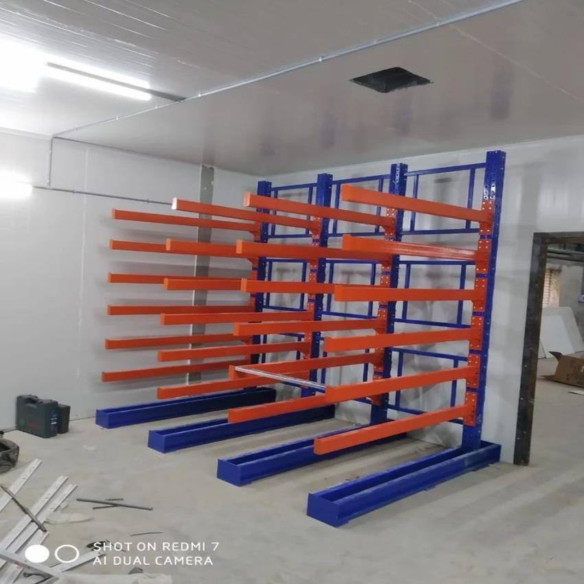 Galvanized mild steel cantilever rack with 6 shelves. Engineered for heavy loads exceeding 500 kg. Made in India, suitable for industrial storage.