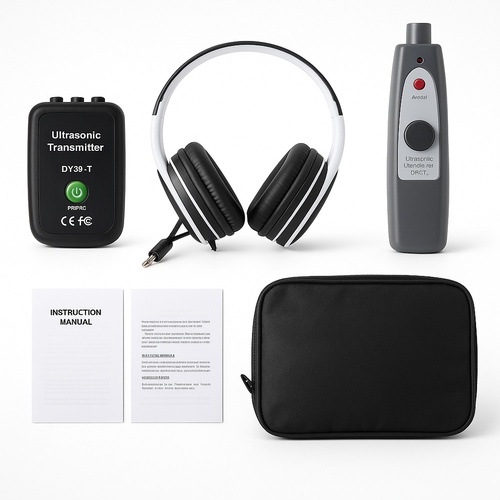 DY26-T ultrasonic leak detector with 40kHz frequency. Compact size (171 x 43 x 38 mm) and 156 gm weight. Made in India, packaged in a box for secure delivery.