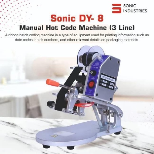 Manual hot code equipment with 3 lines for date and batch coding. Suitable for various packaging applications. Reliable and efficient operation.