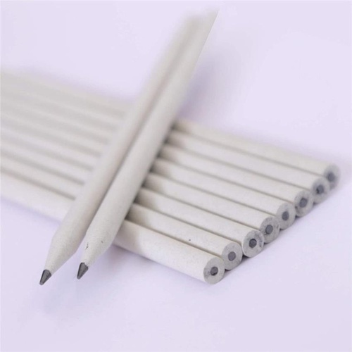Eco friendly paper pencil with dark black lead. White color, 2B application, packaged in 20kg box. Minimum order quantity of 10,000 pieces.
