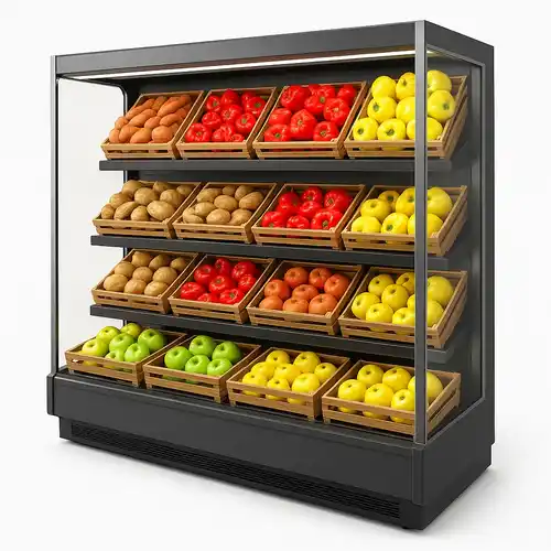 Elanpro ECG 1100 refrigerator with 4 shelves. Features a +2 to 8°C cabinet temperature range and a double glass door.
