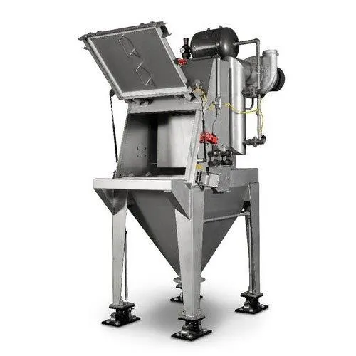 Electric bag dump station constructed from mild steel. Operates at 415V, three-phase power, handling up to 2 tons per hour. Ideal for industrial 50 Kg bag emptying.