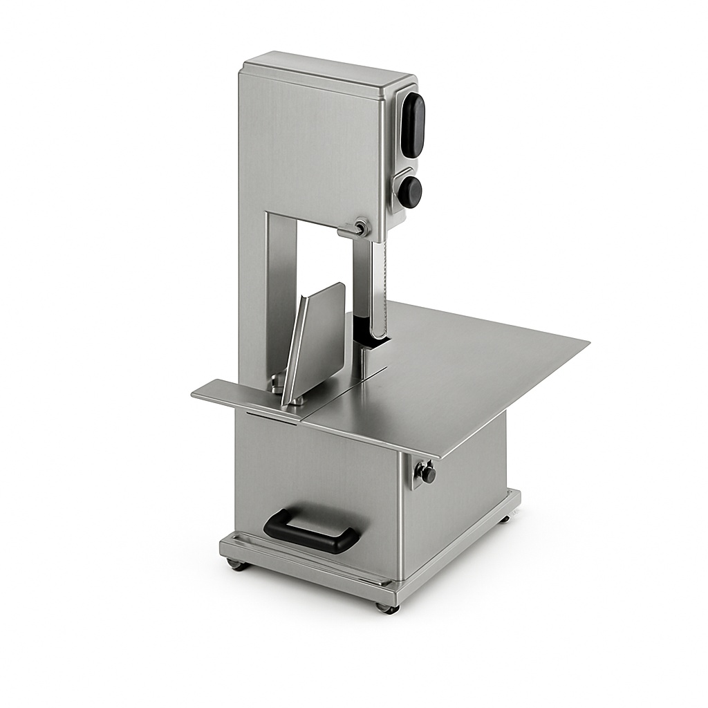 Electric bone saw machine with 120 W (0.16 hp) motor. Stainless steel construction, 220 V, 50 Hz. Color coated surface treatment for durability.