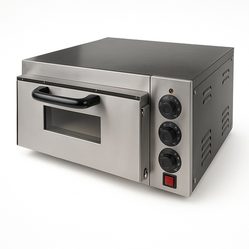 Electric 3 deck, 6 tray pizza oven for hotels and restaurants. Semi-automatic operation. Specifically designed for baking pizzas. Big/Large size.