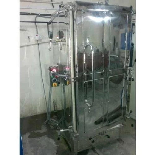 Stainless steel garment steaming machine operating on 220-240V. Electric powered, designed for efficient and effective garment care.