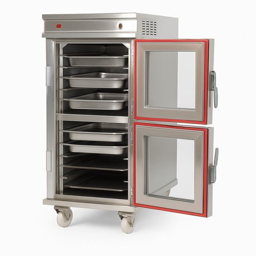 Stainless steel heated holding cabinet for commercial use. Features electric power source. Manufactured in India, available as new. Ideal for maintaining food temperature.