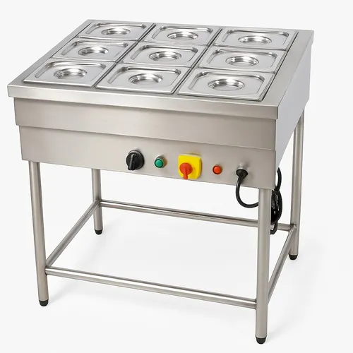 This electric hot bain marie machine, Made in India, is designed for commercial food warming. Offers reliable performance and easy operation for food service.