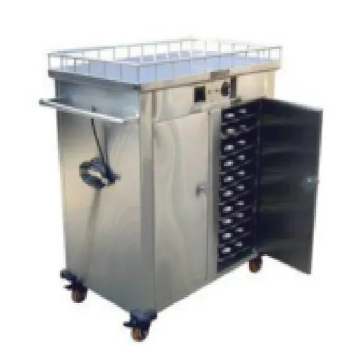 Hot food service trolley, 36x24x36 inches, with 1500W consumption. Electric powered for maintaining optimal food temperature.