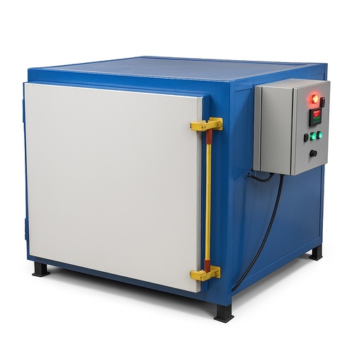 Electric cabinet oven furnace with 100 Cl capacity and 25Kw voltage. Operates within a 100-200°C temperature range. Suitable for industrial heat treatment.