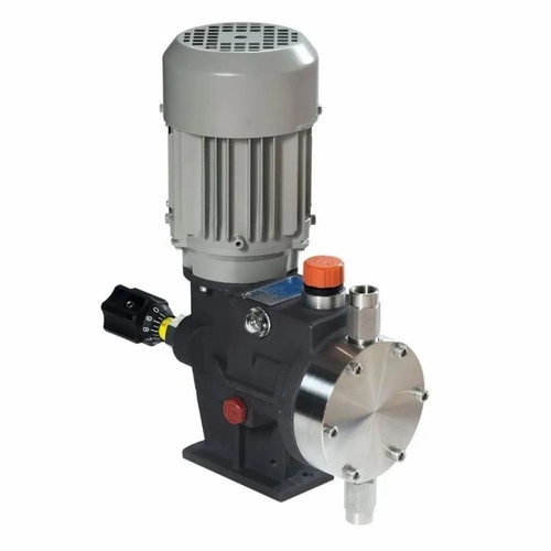 Industrial electric mechanical diaphragm metering pump with 10 HP motor. Features 12 BAR discharge pressure and a flow rate up to 100 LPH. Suitable for industrial use. Electric powered.