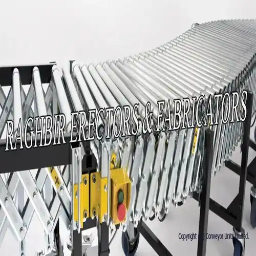 20-40 ft electric flexible roller conveyor made of stainless steel. Handles 50-250 Kg/meter, operates on 230V, 3 phase power. Durable and efficient material transport.