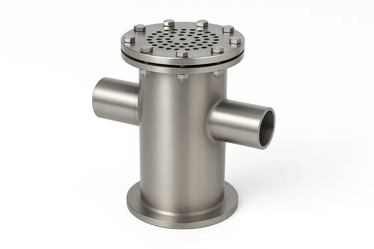 This electric suction strainer has an inline filter type and T-shaped strainer. Available in SS 304/SS 316, with diameters from 1 to 40 inches and inline pipe valve.