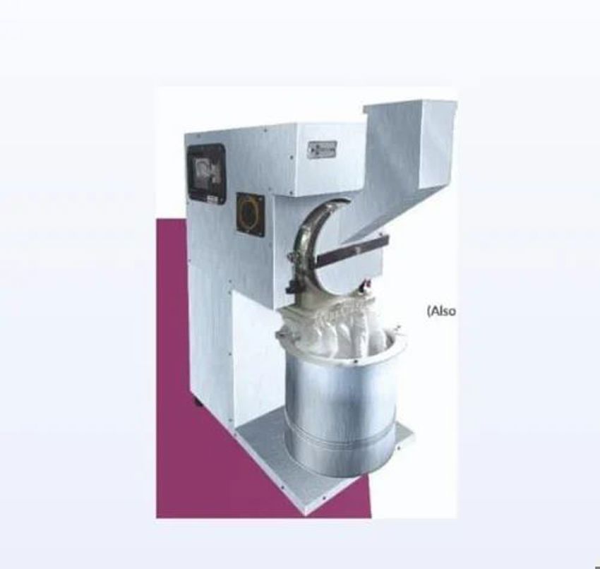 Electric sugar grinder with 50-100 Kg/h capacity for bakery use. Features 1-2 HP motor, three-phase electric power, and automatic operation with a 1-year warranty.