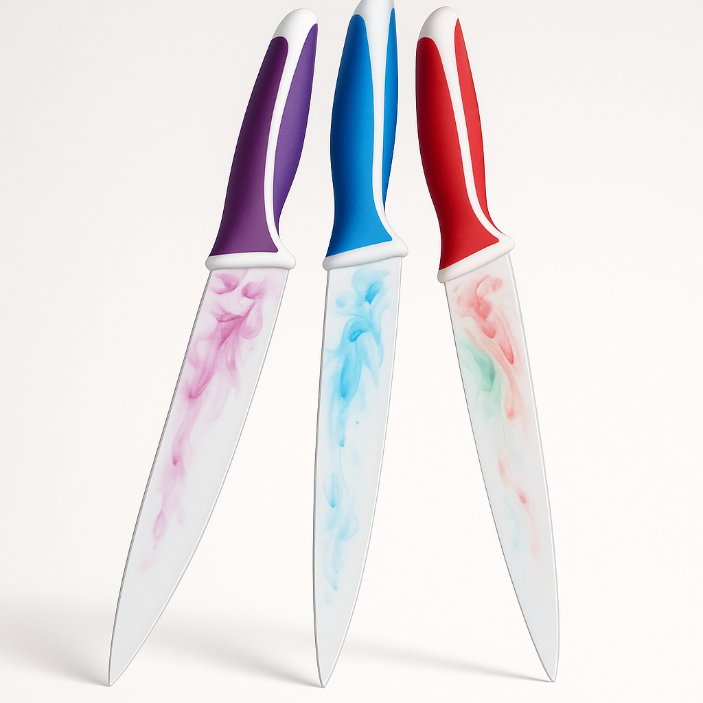 Set of durable kitchen knives, designed for everyday culinary tasks. Crafted for reliability and sharpness, these knives offer a comfortable grip and long-lasting performance.
