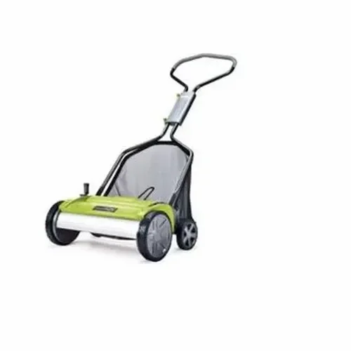 Green petrol lawn machine with 4 hp power and 30-80 mm cutting capacity. Features constant forward speed and weighs approximately 40 kg.