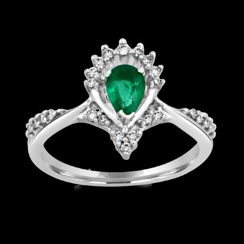 Women's emerald and real diamond ring, polished finish, made in India. Versatile for any occasion, showcasing exquisite craftsmanship and genuine gemstones.