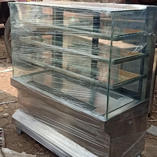 This cake cooling counter features G+3 shelves, sliding doors, and is constructed from Jindaal steel for durable cake chilling and storage.