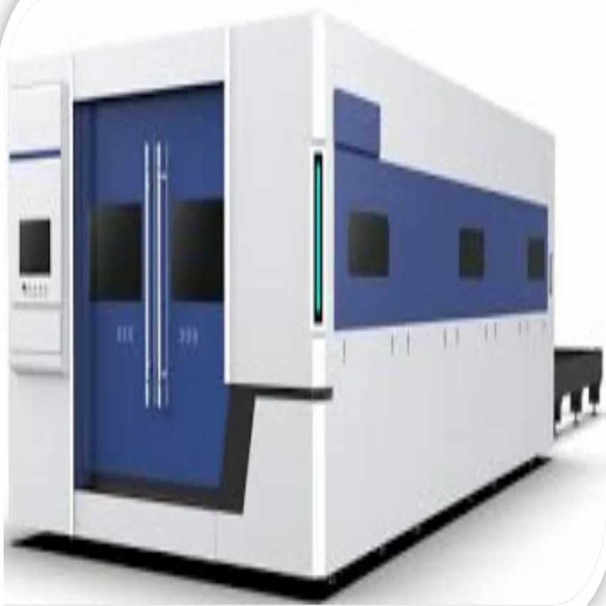 Enclosed fiber laser cutting machine with 3.0-12.0 kW capacity. Features Cypcut controller, Raytools/Precitec auto-focus cutting head, and 1600x3200mm cutting area with table exchanger.